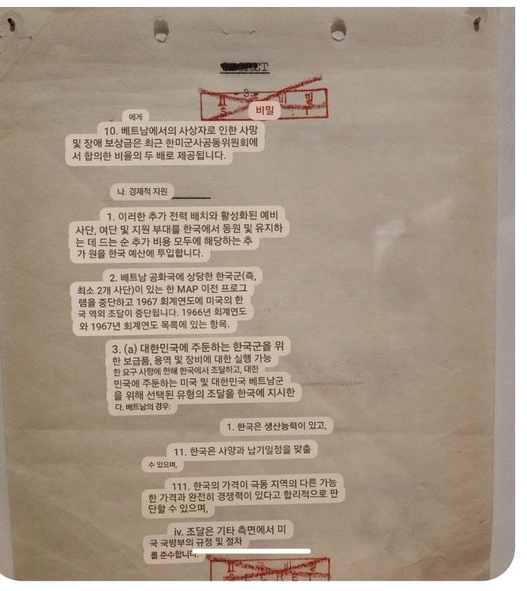 서한에는 그래도 한국군의 개인 급여문제가 세부사항 8항에 한국군의 개인급여가 일부담겨저있다.