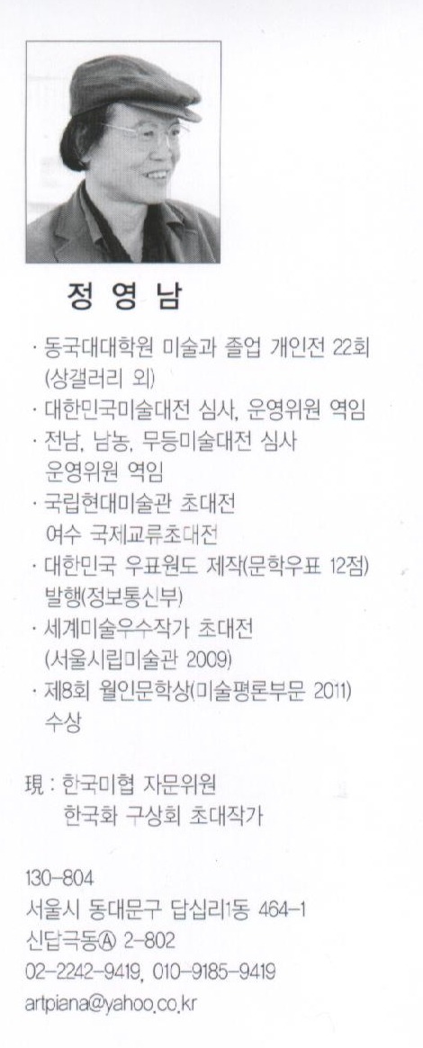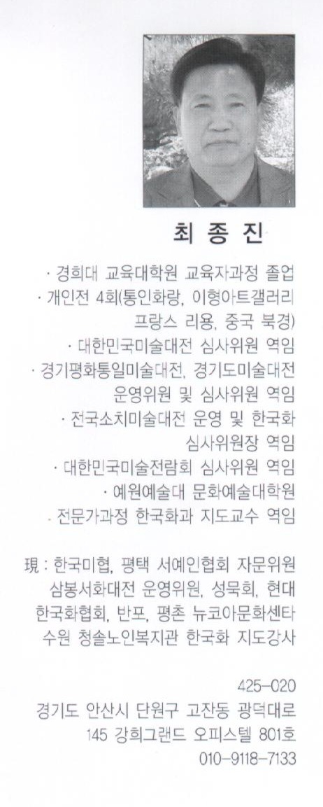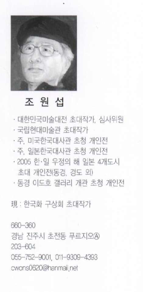 초대작가 제3부 ( 정영남,조원섭,최종진,하철경 ) 작성자lbg|작성시간14.03.22|조회수178 목록 댓글 0 글자크기 작게가 글자크기 크게가 제13회 한국화 구상회 전시작품( 초대작가 제1,2,3 부 명단 ) 제1부 ( 강장원,강지주,곽창주,구자옥,김난옥,김승학,김원술,노달수,마시풍,박병준 ) 제2부 ( 박영재,박항환,손철,안병찬,우희춘,이보영,이원좌,이재진,이종선,장재운 ) 제3부 ( 정영남,조원섭,최종진,하철경 ) 전시기간: 2013년 10월 16일 ~ 10월 22일전시장소: "인사동 서울미술관 (전관)" 다음검색 현재 게시글 추가 기능 열기 북마크 공유하기 신고 센터로 신고 댓글 댓글 0 댓글쓰기 댓글 리스트