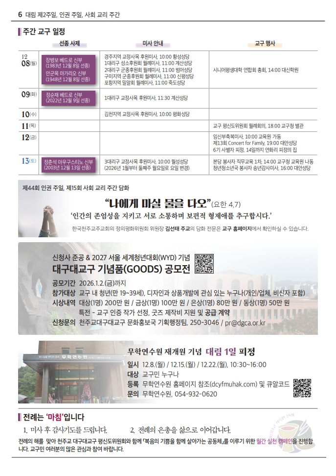 흥해주보, 25년 12월 7일, 대림 제2주일 작성자양승찬 사도요한|작성시간25.12.06|조회수115 목록 댓글 0 글자크기 작게가 글자크기 크게가 다음검색 현재 게시글 추가 기능 열기 북마크 신고 센터로 신고 댓글 댓글 0 댓글쓰기 답글쓰기 댓글 리스트
