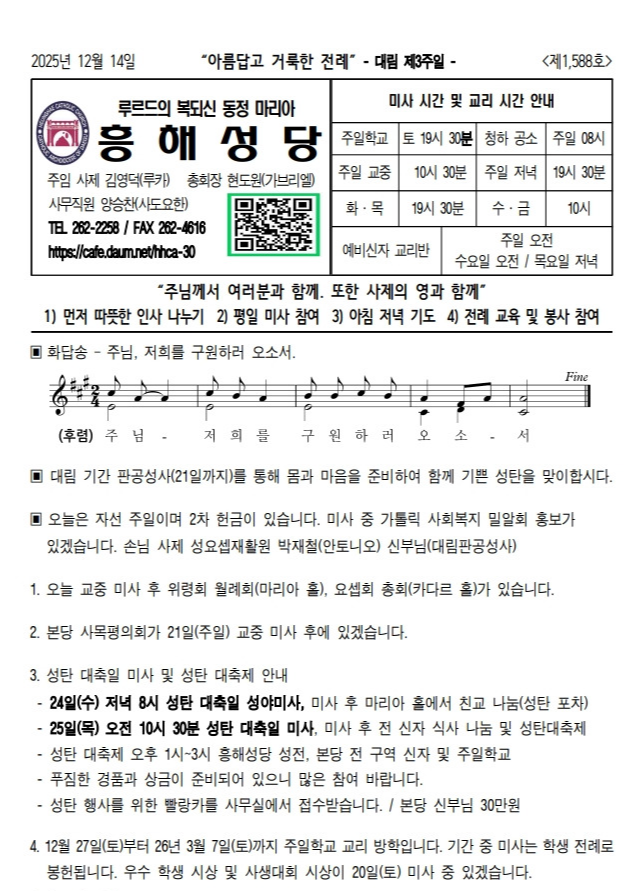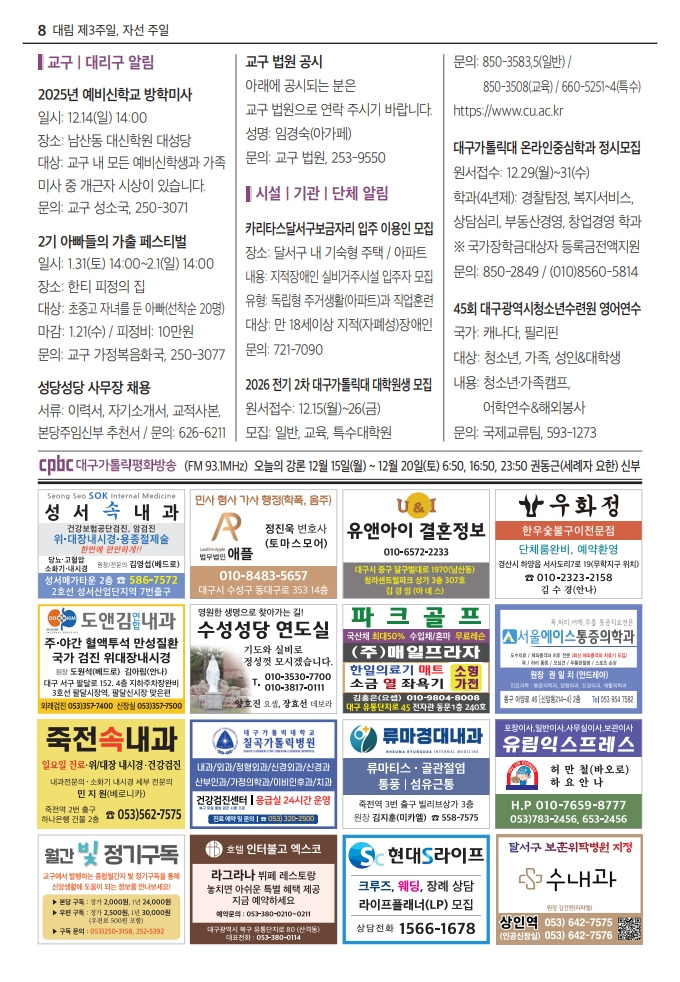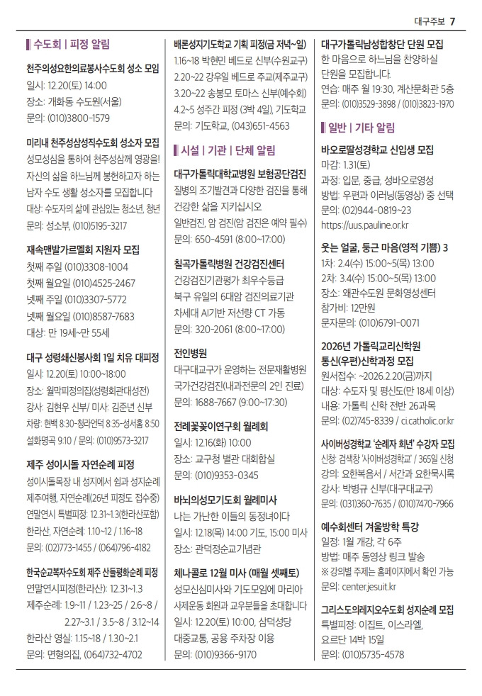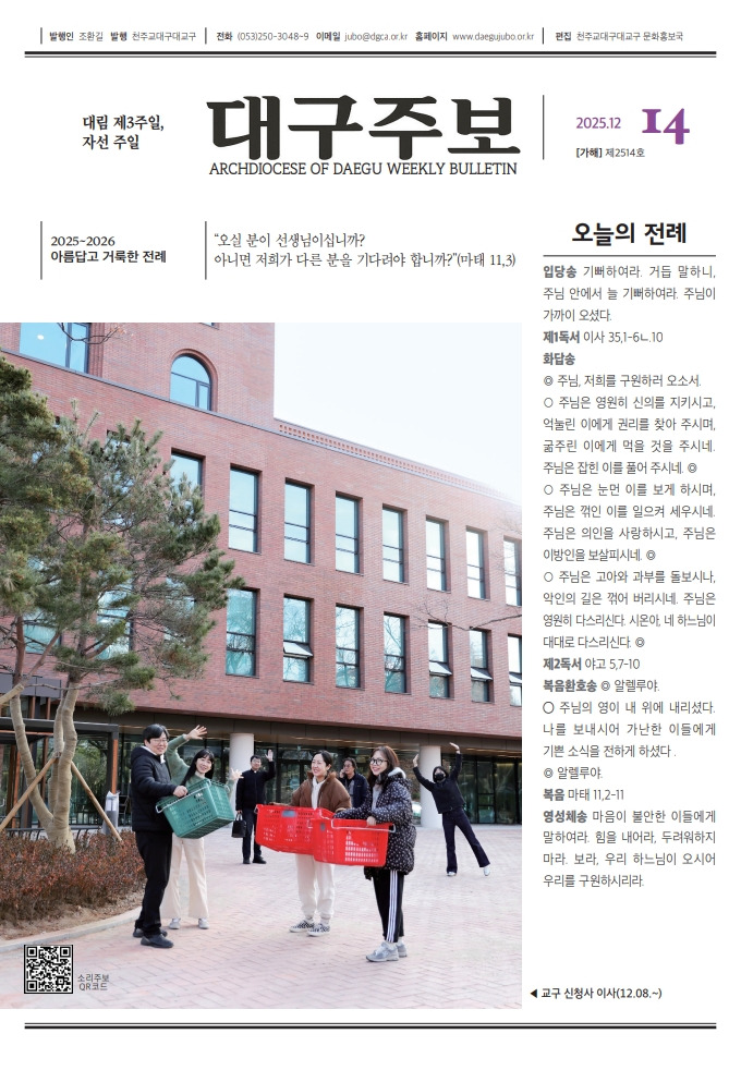 흥해주보, 25년 12월 14일, 대림 제3주일 작성자양승찬 사도요한|작성시간25.12.16|조회수90 목록 댓글 0 글자크기 작게가 글자크기 크게가 다음검색 현재 게시글 추가 기능 열기 북마크 신고 센터로 신고 댓글 댓글 0 댓글쓰기 답글쓰기 댓글 리스트