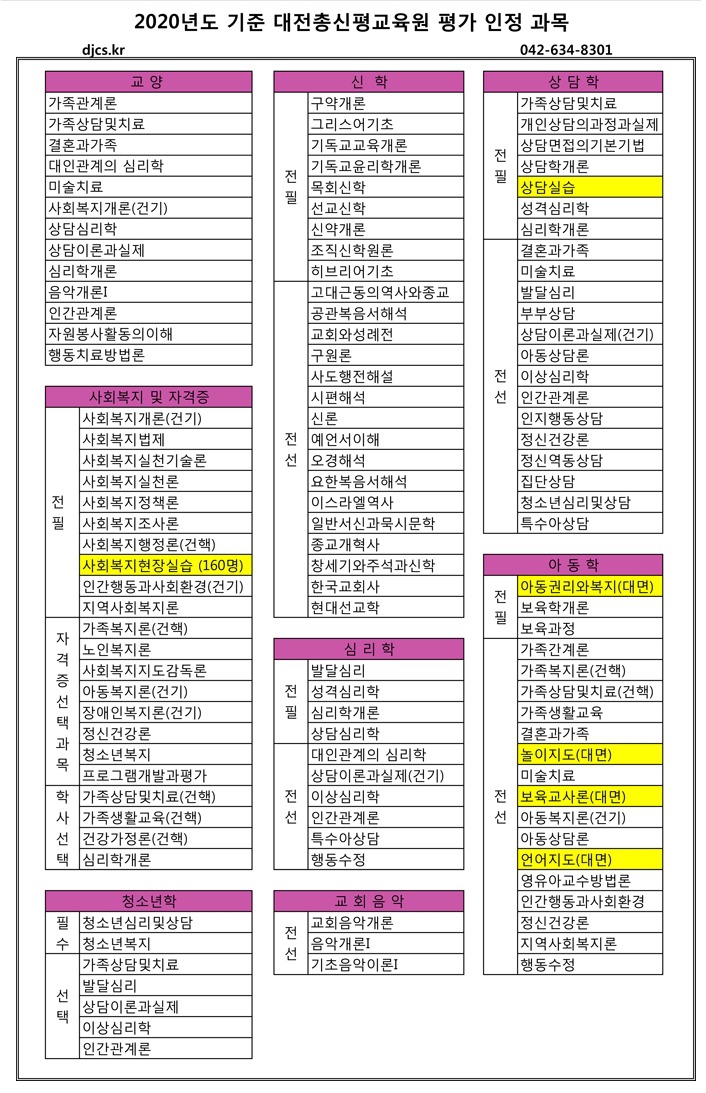 대전총신평생교육원 2020년 평가인정과목 작성자행정실|작성시간20.03.26|조회수154 목록 댓글 0 글자크기 작게가 글자크기 크게가 다음검색 현재 게시글 추가 기능 열기 북마크 공유하기 신고 센터로 신고 댓글 댓글 0 댓글쓰기 답글쓰기 댓글 리스트