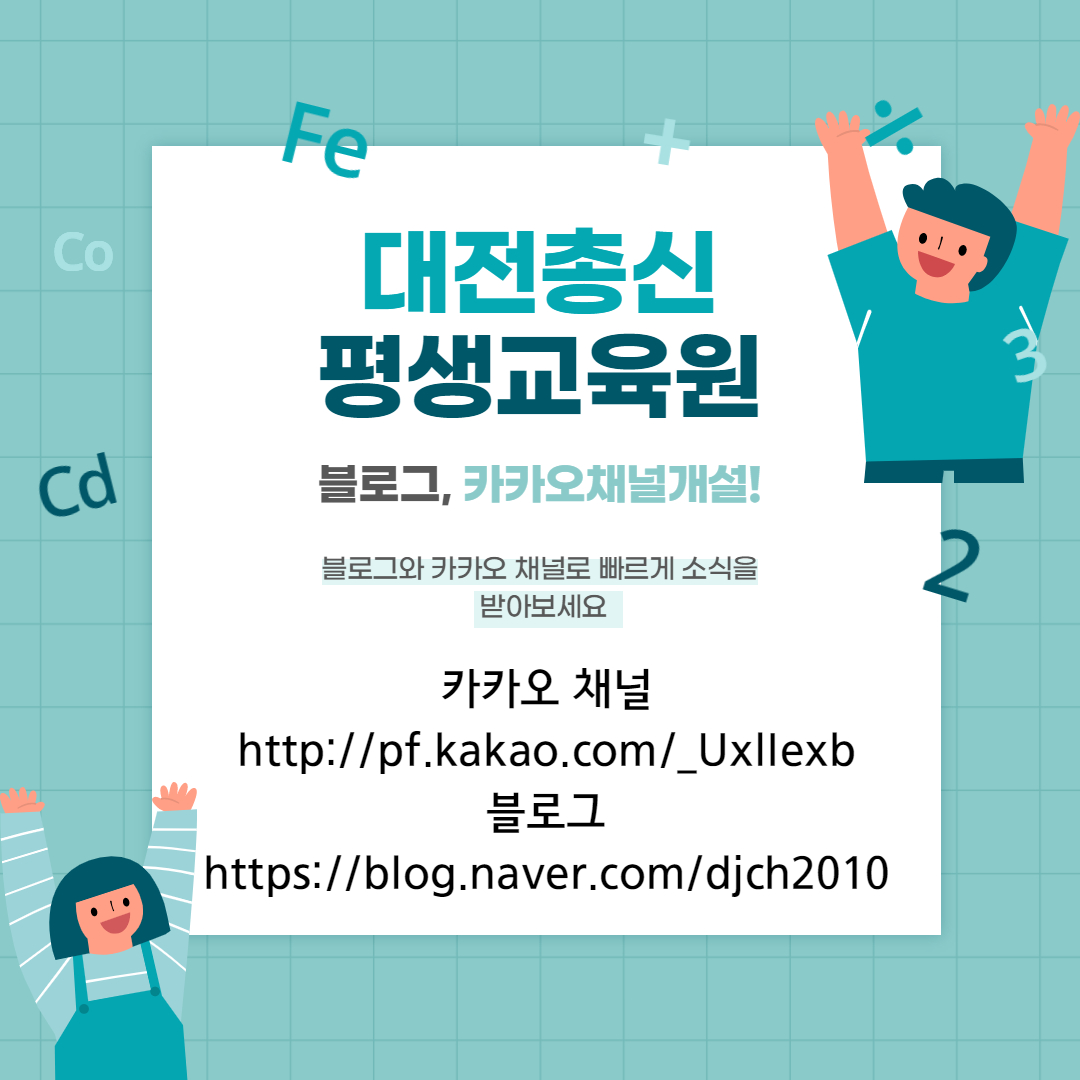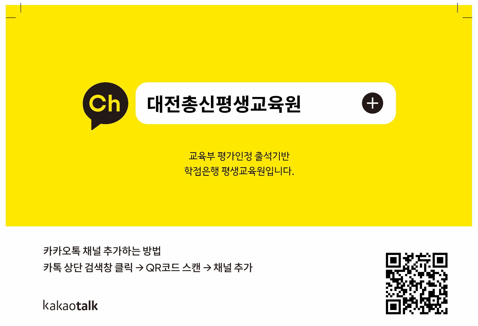 대전총신평생교육원 카카오 채널 및 블로그 개설 작성자행정실|작성시간20.11.03|조회수413 목록 댓글 0 글자크기 작게가 글자크기 크게가 다음검색 현재 게시글 추가 기능 열기 북마크 공유하기 신고 센터로 신고 댓글 댓글 0 댓글쓰기 답글쓰기 댓글 리스트