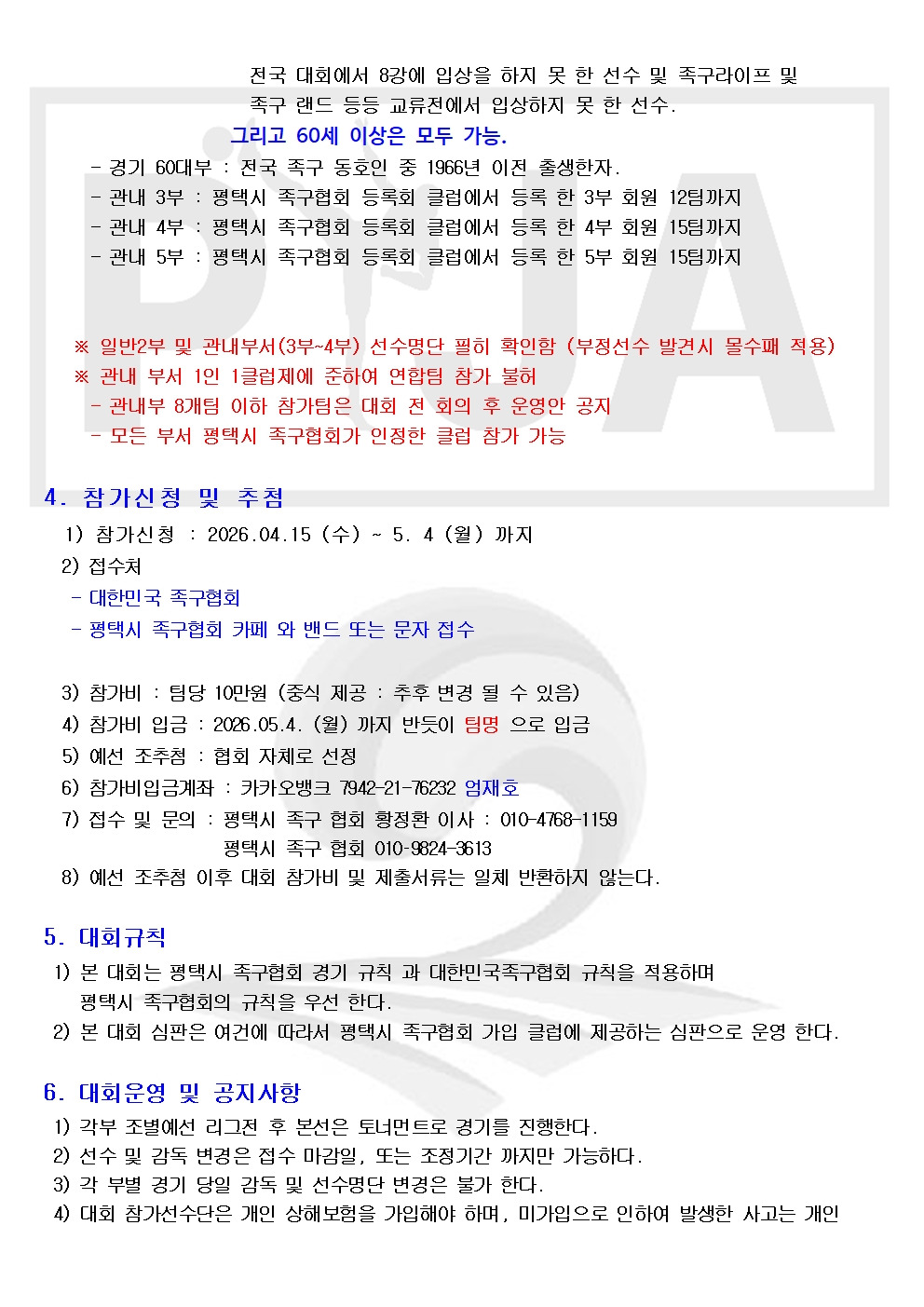 안녕하세요 평택시 족구협회 입니다.