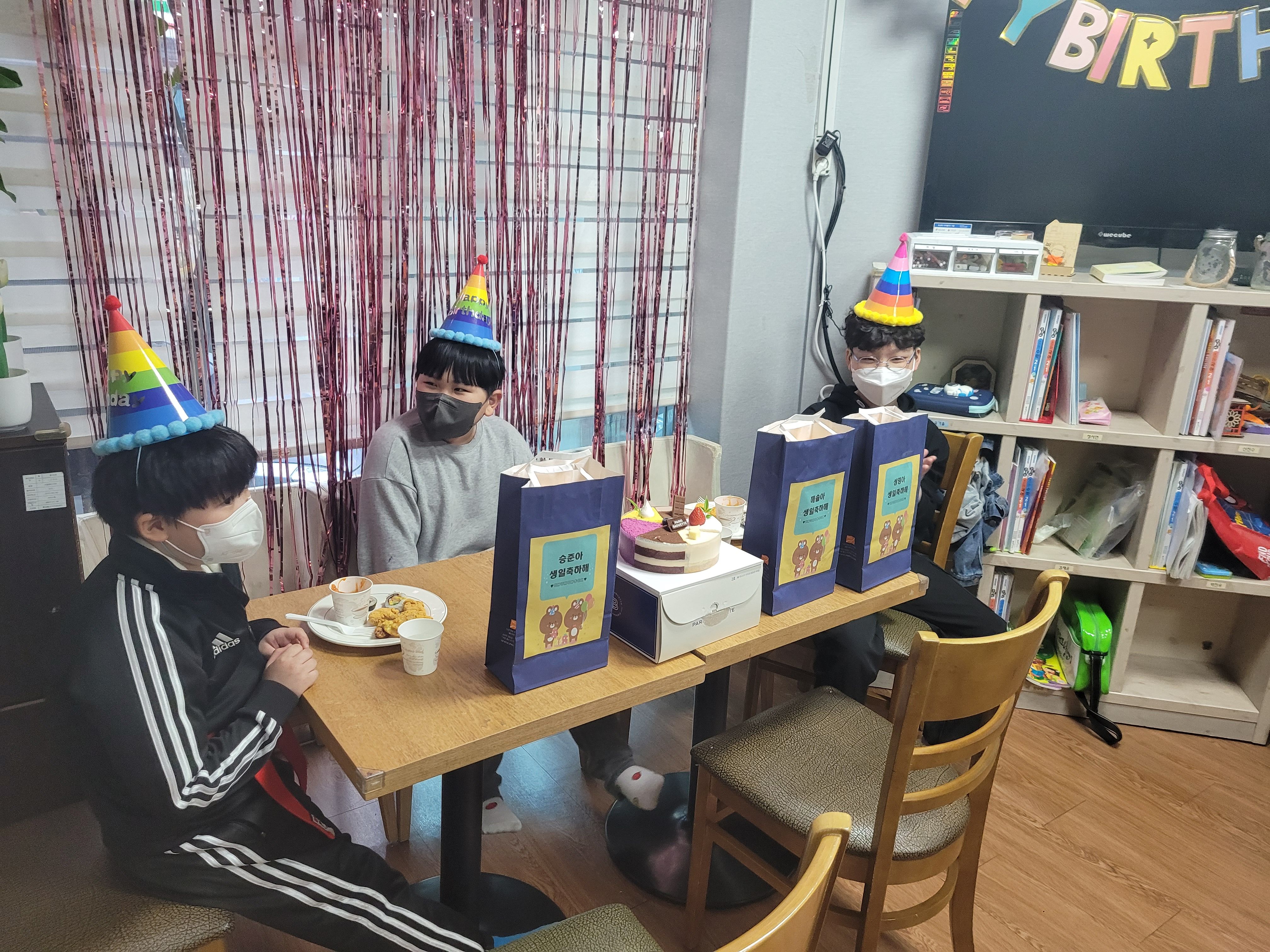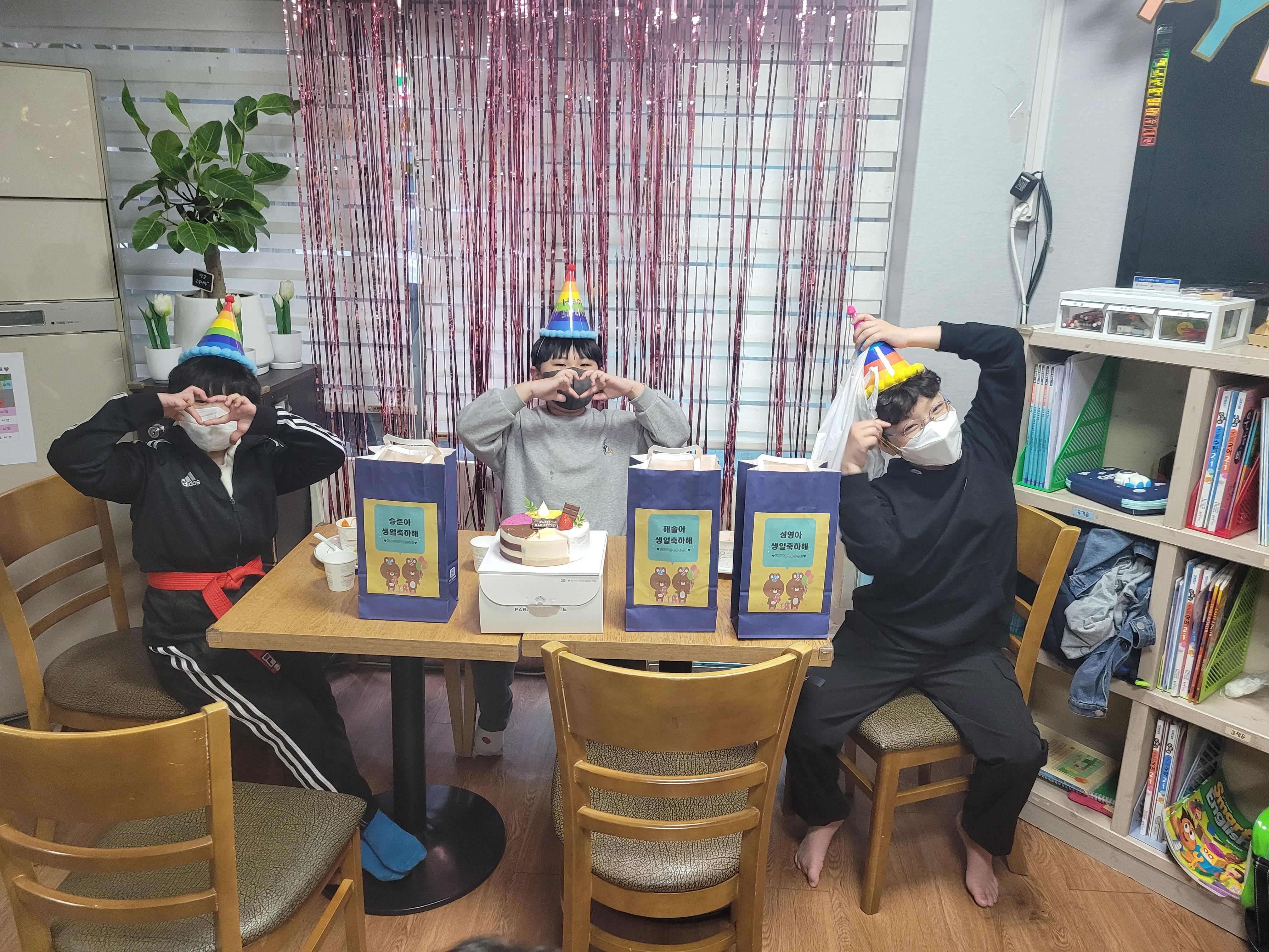 2023.3월 생일파티 작성자한사랑|작성시간23.04.04|조회수110 목록 댓글 0 글자크기 작게가 글자크기 크게가 202320233월 생일을 맞이한 승준, 해솔, 성영이 많이 많이 축하해요~~건강하고 씩씩하게 성장하기를~~~한사랑 친구들이 3월 생일 파티를 하면서 맛있는 저녁식사와 영화 관람을 하였답니다. 다음검색 현재 게시글 추가 기능 열기 북마크 공유하기 신고 센터로 신고 댓글 댓글 0 댓글쓰기 답글쓰기 댓글 리스트