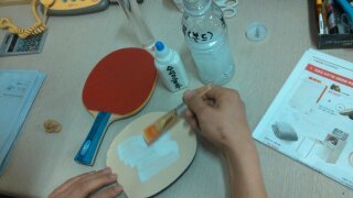 라텍스글루와 물을 8:2로 희석한 것을