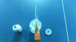 사용하고 난 후 붓은 반드시 물통에 담가 놔야 합니다.
