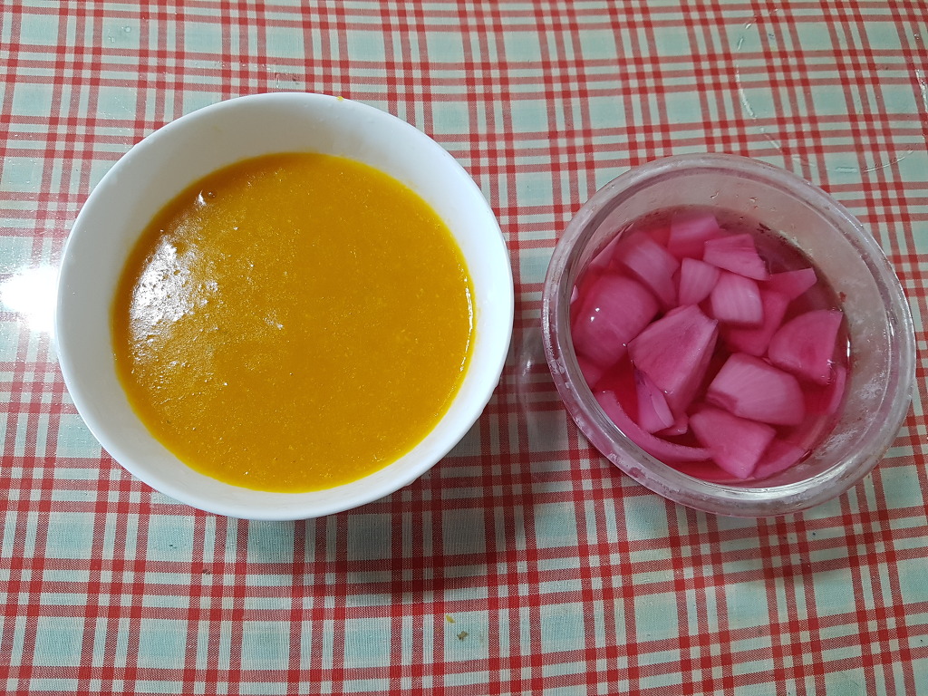 옆에 있는 건 자색양파 초절임이예요.