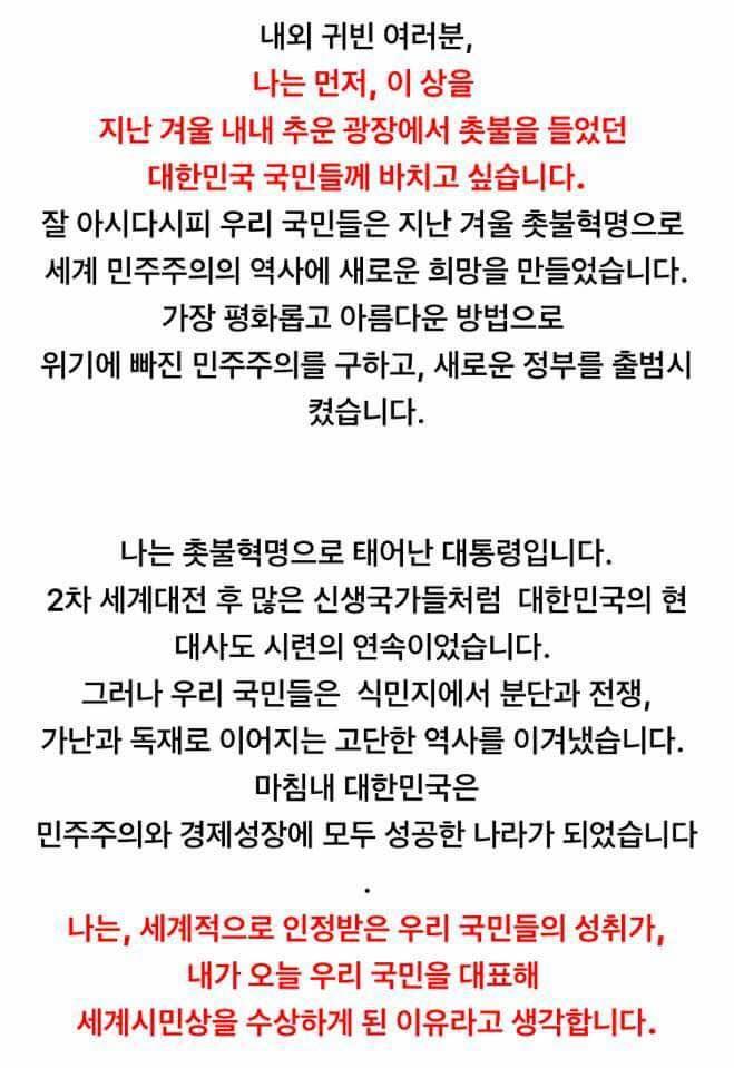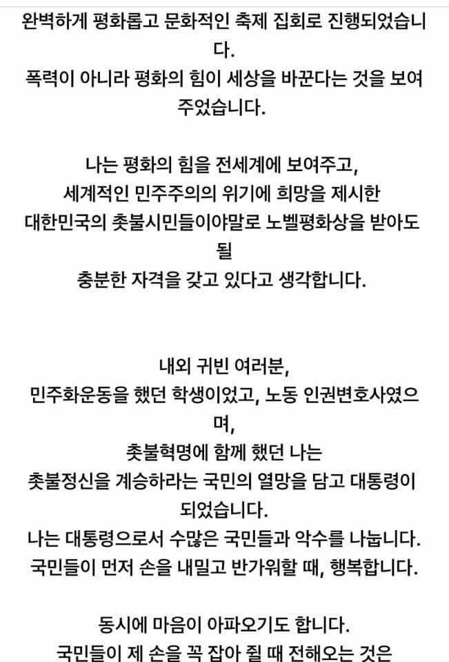 작성자나쁜녀석 작성시간 17.09.23 드디어 우리나라도 오바마같은 존경할 만 한 대통령을 갖게 되었습니다. 아직 시작이지만, 또 여소야대의 어려운 정치지형이지만 끝까지 흔들리지 말고 잘 해 내실꺼라 밑습니다. 트럼프같은 준표형님의 반대와 방해가 많을 것 같습니다. 굴하지 마시고 국민만을 보시고 끝까지 흔들리지 않으시기 바랍니다...^^
