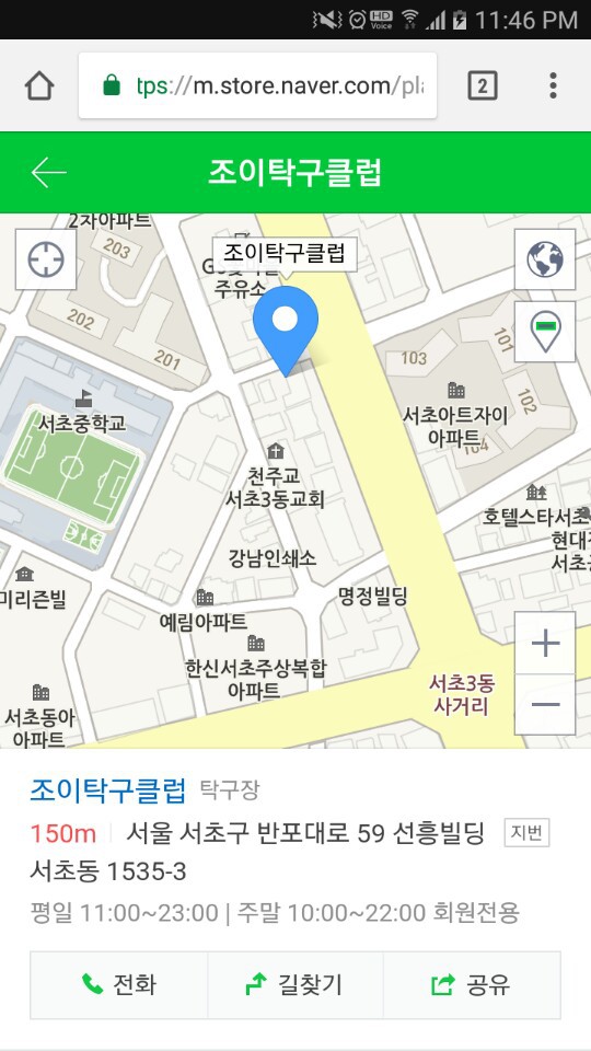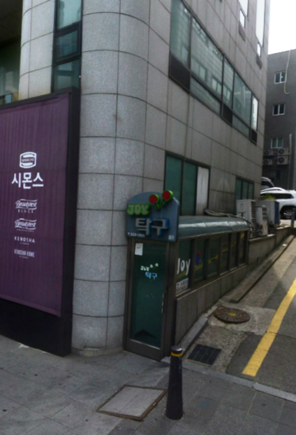 요즘 영어 시험 준비 때문에 레슨을 잠시 쉬고 운동도 자주 못 하고 있는 상황인데, 몸과 정신이 괴롭더라구요. 그래서, 대학원에서 비교적 가까운 곳에 있는 탁구장에 잠시 짬을 내어 방문하였습니다. 서초구 서초동에 있는 조이탁구클럽이고, 서초3동 삼거리와 교대입구 삼거리 중간 지점에 있습니다(지하1층에 위치). 3호선 남부터미널역에서 빠른 걸음으로 5분 정도 거리입니다.