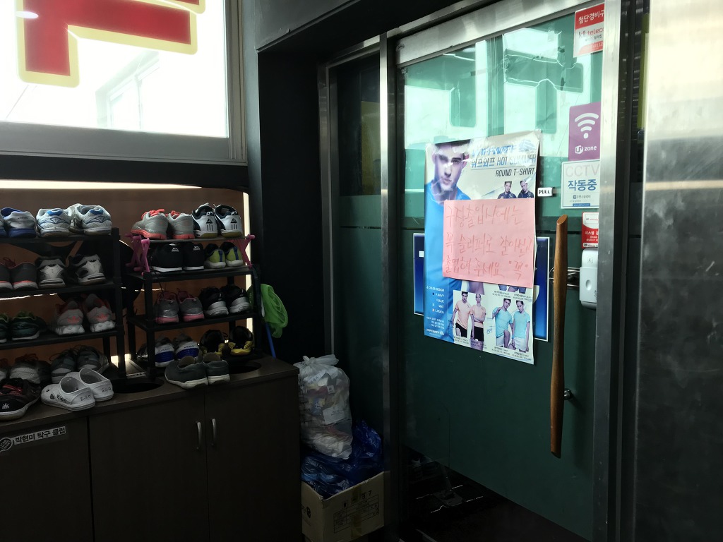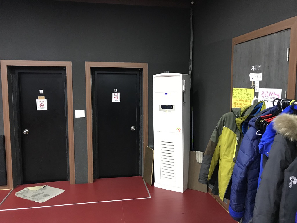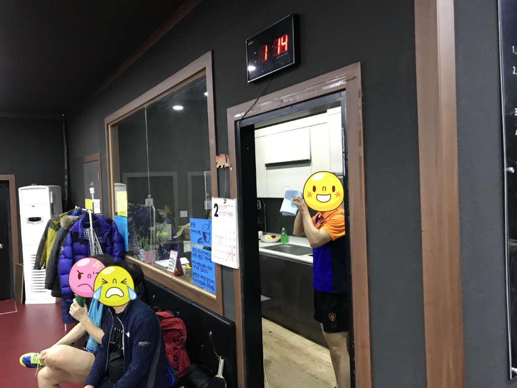 엘리베이터를 타고 5층에 도착하면 문이열리면서 바로 왼쪽으로는 신발장 오른쪽으로는 탁구장 입구가 보입니다.