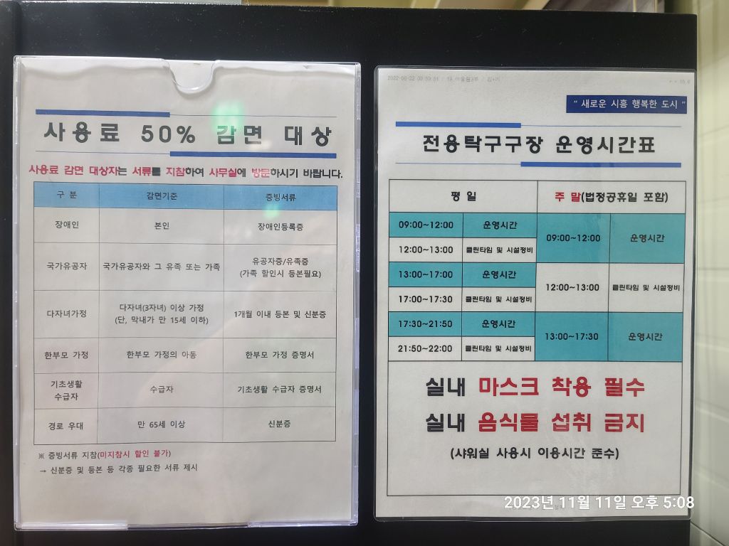 시흥에 훌륭한 탁구전용체육관이 있네요^^