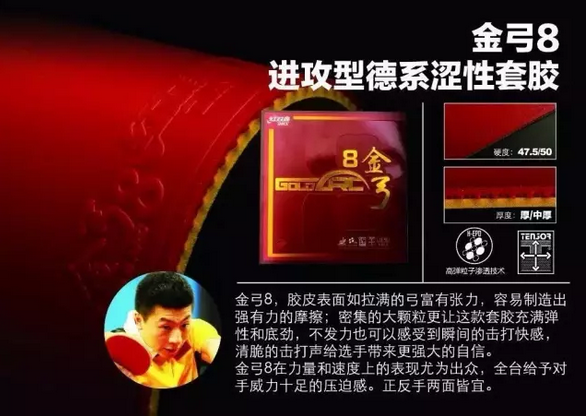 The Gold-arc 8 rubber, made by Germany ESN factory, introduces the advanced German TENSOR technology.