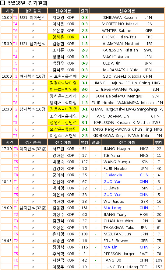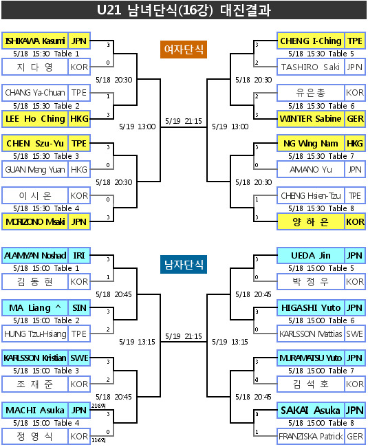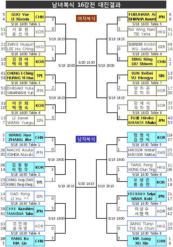 [스크랩] 코리아오픈 : 남녀복식 16강전 경기결과 작성자짱가(수원)|작성시간12.05.18|조회수306 목록 댓글 1 글자크기 작게가 글자크기 크게가 다음검색 스크랩 원문 : 짱가의 탁구블로그 현재 게시글 추가 기능 열기 북마크 공유하기 신고 센터로 신고 댓글 댓글 1 댓글쓰기 답글쓰기 댓글 리스트 작성자지니 | 작성시간 12.05.18 21세 이하 남자는 1회전에서 전멸이군요..이것참..앞날을 걱정해야 하는지 어린 선수들이 3:2까지 접전을 했으니 기뻐해야 하는지..정영식은..안풀리는걸까요? 실력일까요?..안타까운 선수중 하나이지만 이젠 좀더 확실한 성적을 내야할 나이인데.. 댓글 전체보기