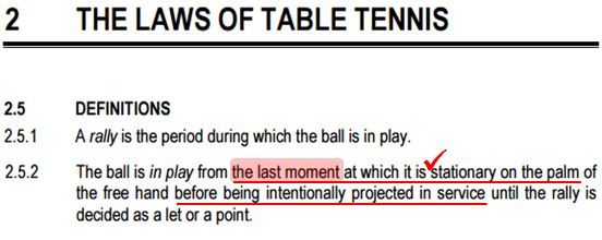 - "공을 손에서 떨어뜨린 시점"이 랠리(공이 "인 플레이"된 상태)의 시작 시점이므로.