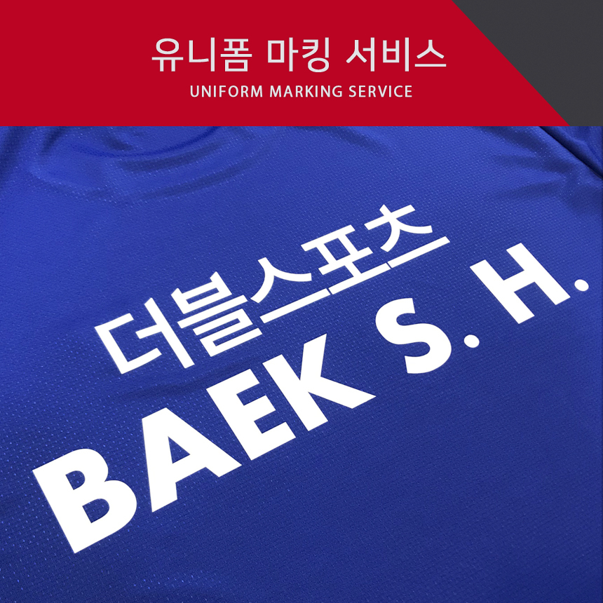 동호회 로고나 심볼을 만들고 싶은데 어떻게 할까? 고민하시는 분들을 위해 더블스포츠에서는 동호회 로고나 심볼을 무료로 제작해드리고 등판이나 앞판 팔소매 등에 마킹해드립니다. 일정금액 이상의 유니폼을 구입하시면 마킹서비스 1줄이 무료입니다. 추가로 하시는 비용만 부담하시면 됩니다. 원하는 문구나 캐릭터를 컬러로도 작업해드립니다. 많은 관심 부탁드립니다.