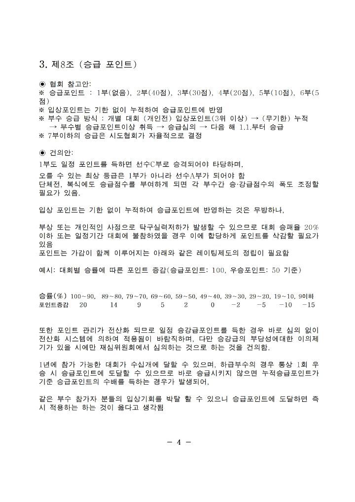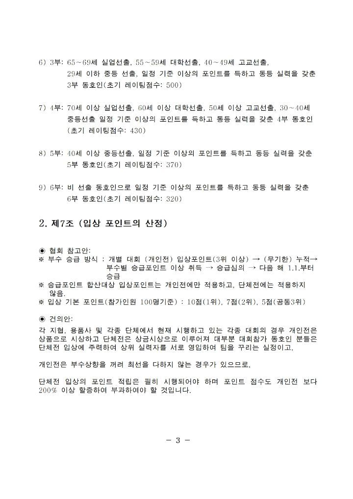 아래 협회 홈피 링크를 참조하시어 많은 탁구인 분들이 협회 부수체계의 정립에 조언을 아끼지 않았으면 합니다.