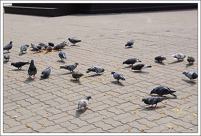 8. 맥아더 장군 동상과 한미수교 100주년 기념탑 사이 공원 광장의 비둘기들