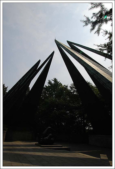 16. 탑 중앙의 조각품 : 작품명 ☞ "움직임 그 100년", 조각 ☞ 조각가 최만린