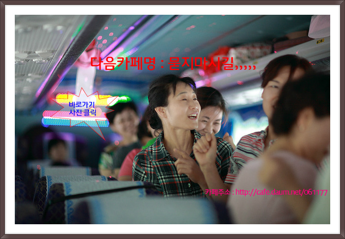 대개 인솔자가 있어 분위기를 띄우기 위해 ( 가이드는 디스코 & 트롯트 음악을 틀어 놓아 좋은 분위기를 만들려고 노력합니다. )