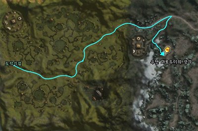 길을 따라가다가 사령의 요새 앞에서 부터는 다음 스크린샷을 참고하여 움직이자.