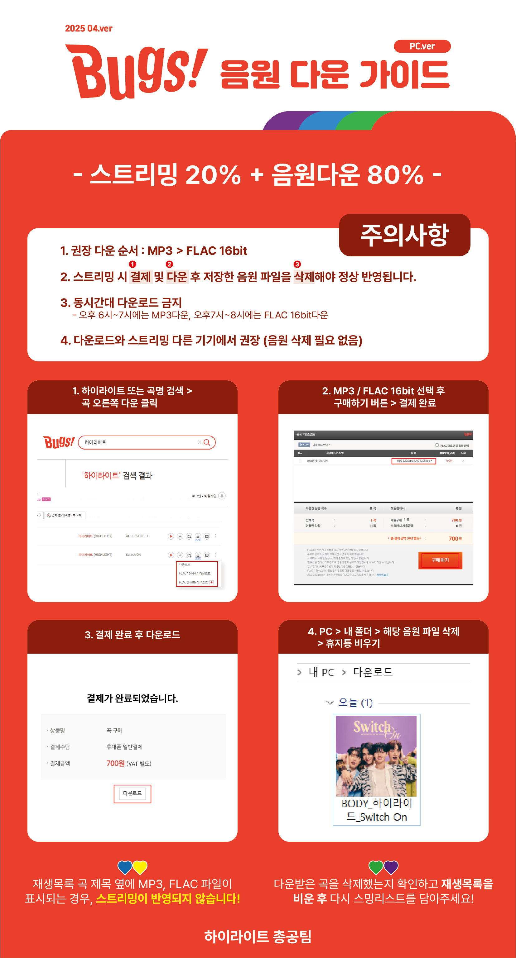 벅스 음원 다운 가이드 (2025ver.) 작성자임시 총괄총대|작성시간25.04.15|조회수27 목록 댓글 0 글자크기 작게가 글자크기 크게가 다음검색 현재 게시글 추가 기능 열기 북마크 공유하기 신고 센터로 신고 댓글 댓글 0 댓글쓰기 답글쓰기 댓글 리스트