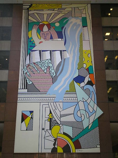 Roy Lichtenstein's Mural with Blue Brushstroke, in the atrium of the AXA Center, New York