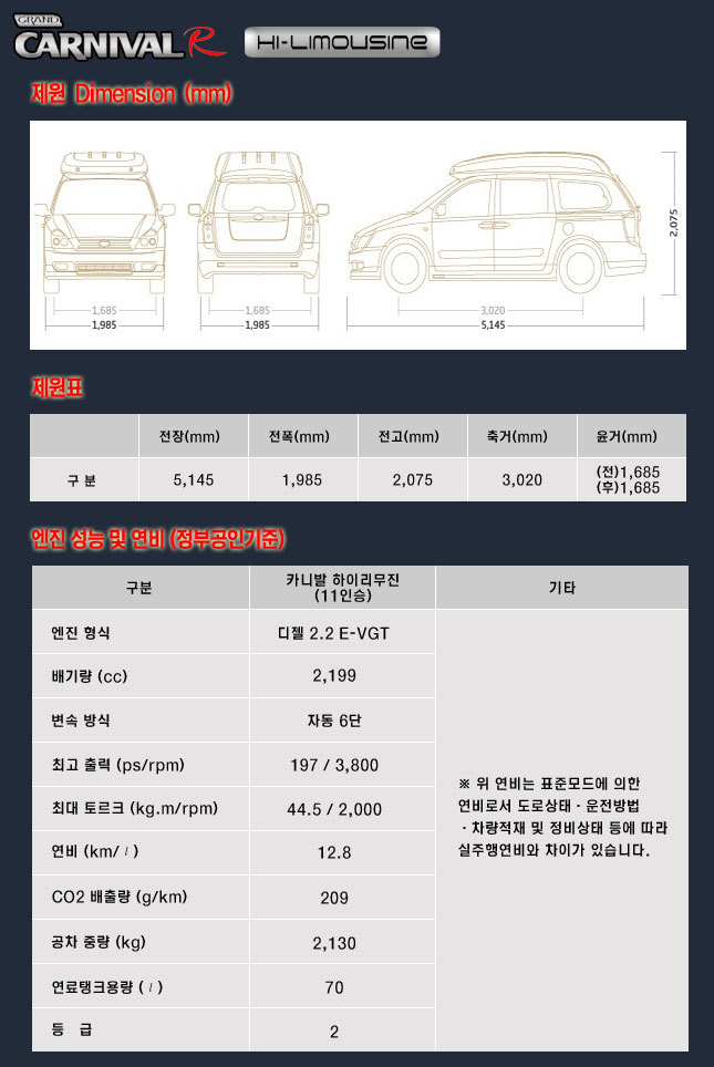 그랜드카니발R 하이리무진 제원 작성자까페지기|작성시간11.06.15|조회수2,508 목록 댓글 0 글자크기 작게가 글자크기 크게가 다음검색 현재 게시글 추가 기능 열기 북마크 신고 센터로 신고 댓글 댓글 0 댓글쓰기 답글쓰기 댓글 리스트