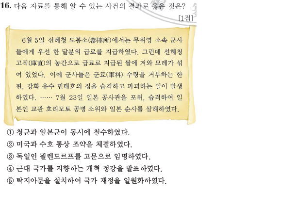 * 임오군란(1882): 개화정책에 대한 구식군대와 민중들의 반란