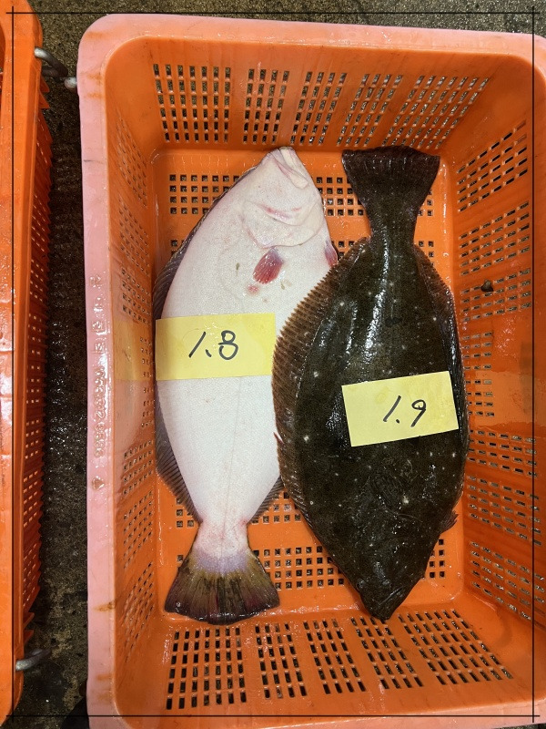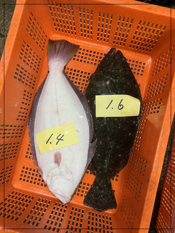 활 광어 상품으로 1마리당 무게 1.4kg ~ 1.9kg 사이 크기 입니다.
