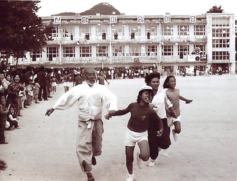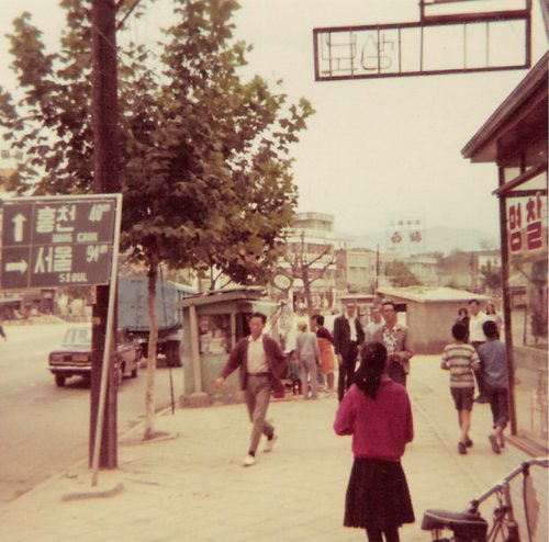 결코 인물 사진이 아니라 당시 중앙국민학교 운동회 사진인데 나는 봉의국민학교를 다녔는데 어머님이 중앙국민학교 앞에서 장사를 하셔서 식사하러 갔다가 중앙국민학교 놀러가 저 건물 지하교실을 들여다보면 남학생과 여학생이 나란히 앉아 공부하는 것을 보면 별천지라고 생각했습니다! 우리 봉의국민학교는 남학생과 여학생이 따로 공부했거든요! 공산당이 싫어요 구호는 68년도 울진 삼척 무장공비 사건 이후의 구호인데 저사진은 70년도나 71년도 정도 된 것 같습니다! 중앙국민학교 저 건물도 없어졌습니다