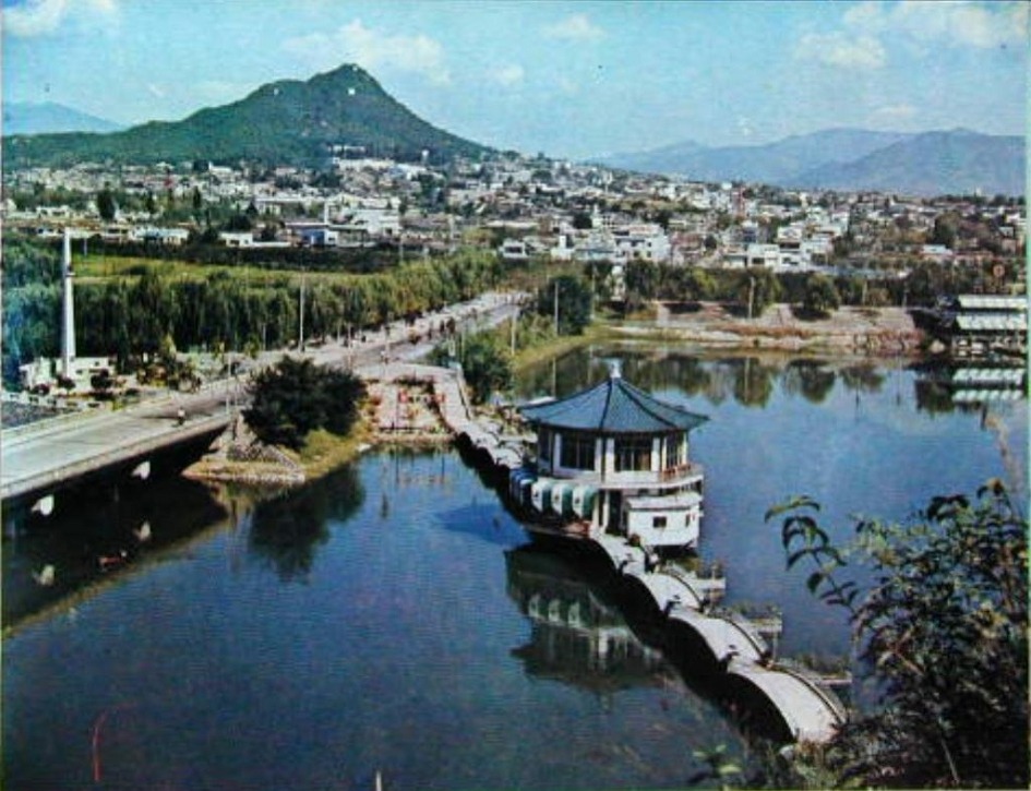 70년대 초반까지 춘천의 관문이던 공지천, 카페 에머랠드까지 보이고 지금은 상당한 면적이 매립되어