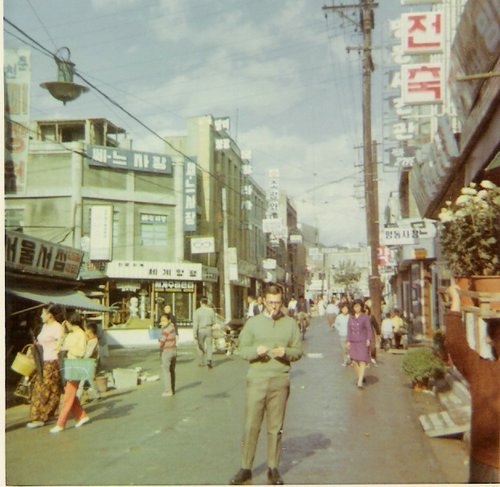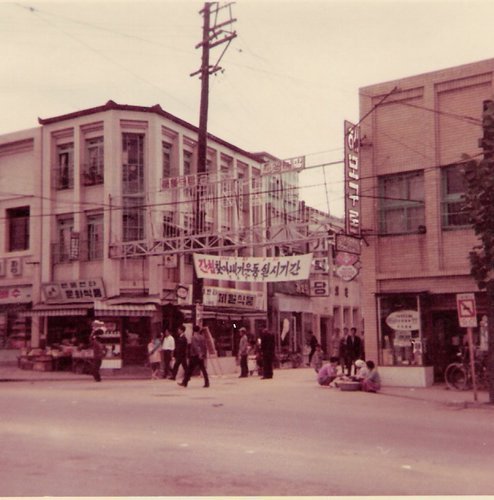 하였습니다! 건물 뒤로 안식일 교회 건물과 도 교육청, 도청, 시청 건물이 보이고 또 70년대 초 서민들의
