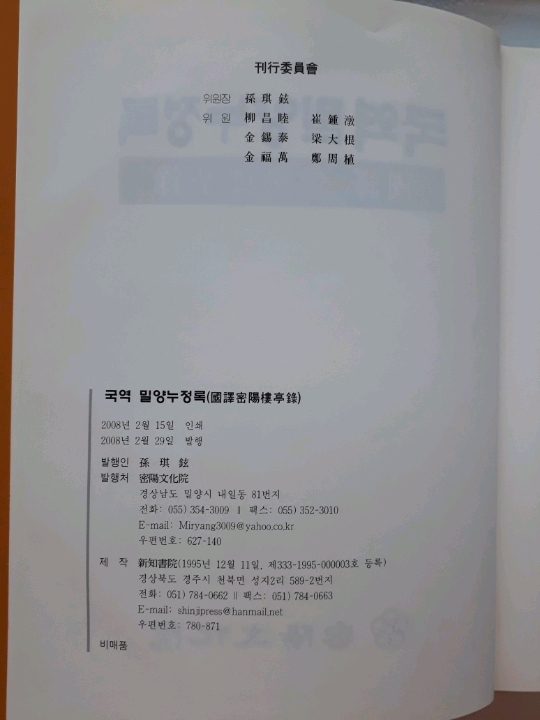 [ 사진 12 ] 2 페이지, 국역 밀양누정록 [간기(刊記)]