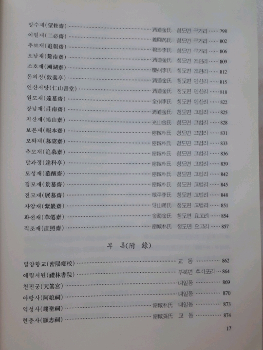 ●遠慕齋 원모재, 全州李氏 전주이씨, 청도면 인산리