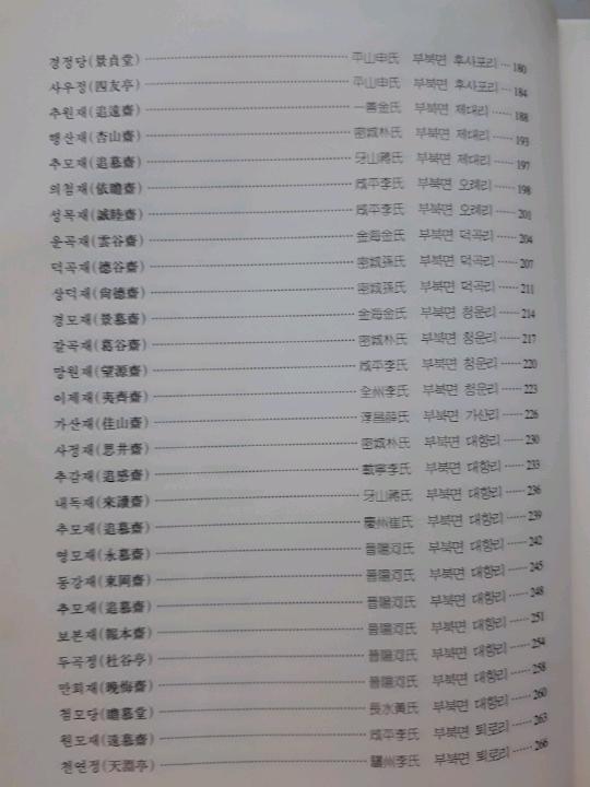 밀양에는 전체 문중에서 265개의 재실이 있는데, 이를 명칭별로 분류를 해보면