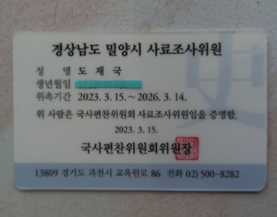 ○2020.3.14 ~ 2023.3.15에 이어, 2023.3.15 ~ 2026.3.14 기간의 사료조사위원 위촉장을 받았습니다.