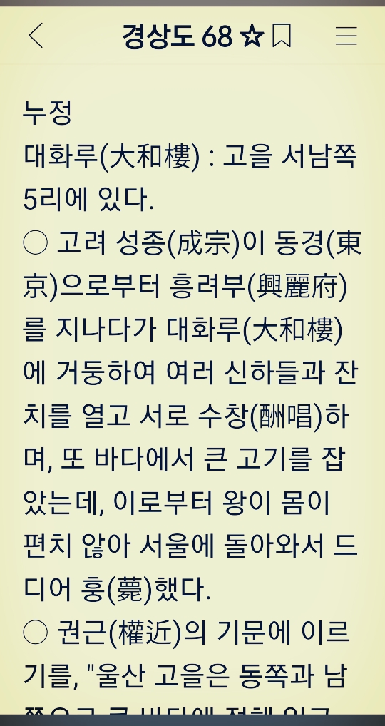 ○'영남루'를 다녀간 수많은 시인ㆍ묵객ㆍ정객 등이 남긴 수많은 글 중에서 '신증동국여지승람'의 밀양도호부 편(編)의 "누정(樓亭) 조(條)"에 있는 글을 아래와 같이 올려드립니다
