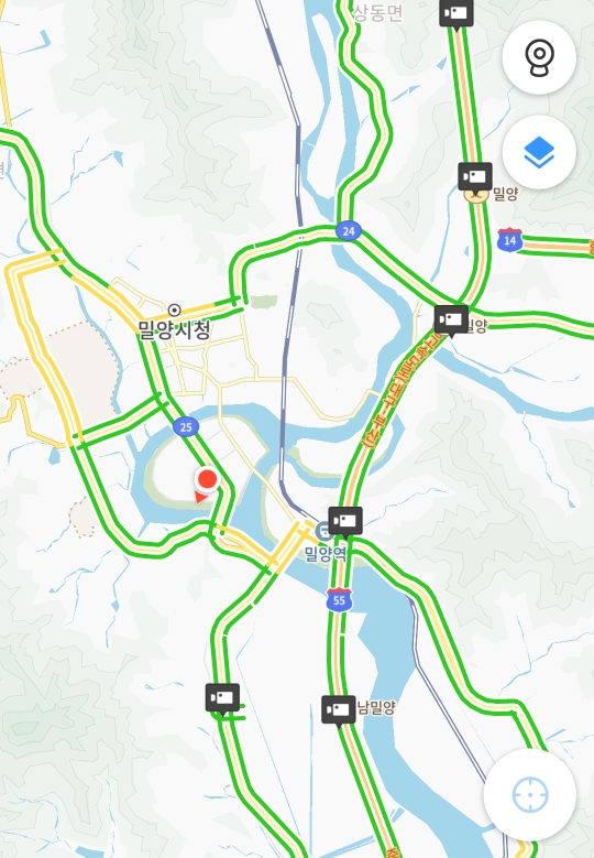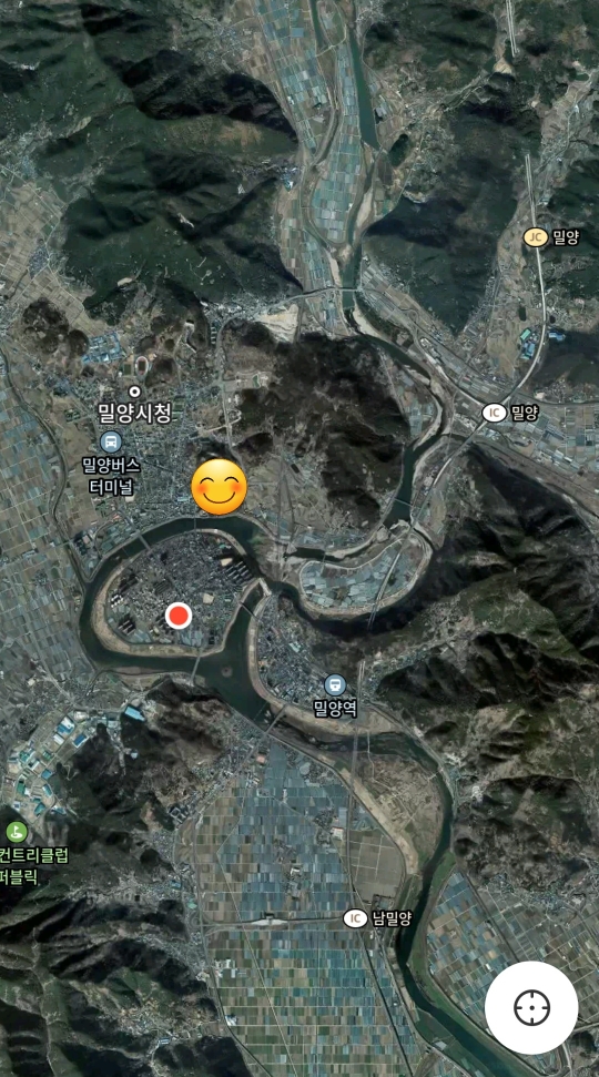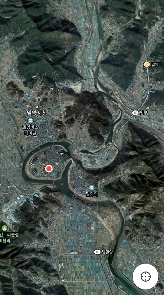 ●아라비아 숫자로 《8 字》를 눞힌 모양의 응천(밀양강)의 지형을 볼 수 있습니다