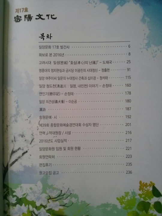 고려전기(高麗前期) 국가재원, 전조(田租)와 토지 중심의 재정구조, 현물 수취와 재정원(土地) 배분과 재정원으로서의 토지분급 문제점으로 된 세부 항목으로 역(役)에 대한 반대급부로 분급한 토지(군인전, 향리전), 공직담당 대가와 신분예우로 분급한 토지, 산관(散官)과 무산계(武散階)에 토지분급 등과제(登科制), 사원(寺院)에 토지와 노비 지급, 지역별 수취와 지역 지배의 존속 세입.세출의 특징과 관리 체제, 세입 내용 세출 계획, 세출 내용(문종 30년 기록 근거 산출 내용), 문종대 부세(賦稅) 수취 時, 답험(踏驗)조사 및 災免制度, 세입 활동의 과중한 비용의 납세자 부담 고통, 세입 수취 과정상 관리의 농간(弄奸)과 횡렴(橫斂), 국가재정 운영상 하층민에 대한 세역(稅役)의 과중한 수취, 조선시대 밀양의 군정(軍丁) 중, 선군(船軍) 현황, 조선초기 밀양의 호구(戶口) 및 군액(軍額) 현황, 토지 면적단위 “결(結)의 규모와 수확량”에 대한 이해