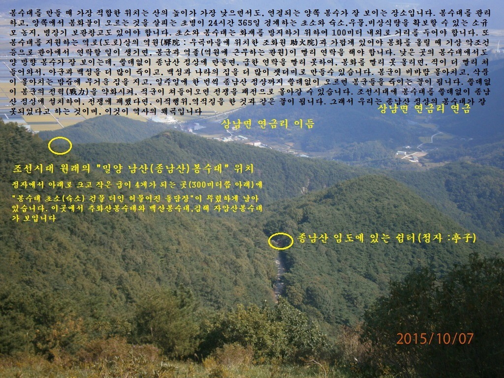 즉, 동아대학교 박물관의 "종남산 봉수대" 위치 학술용역조사가 잘못되었다는 것이 증명이 됩니다