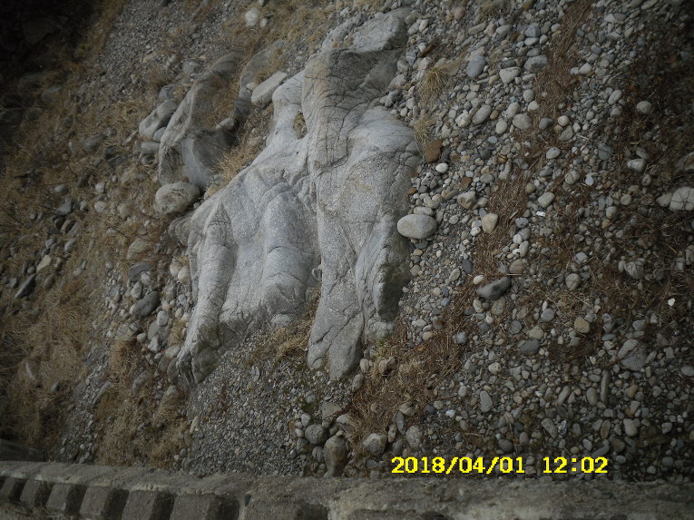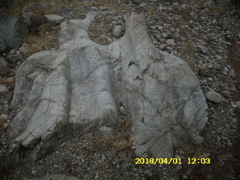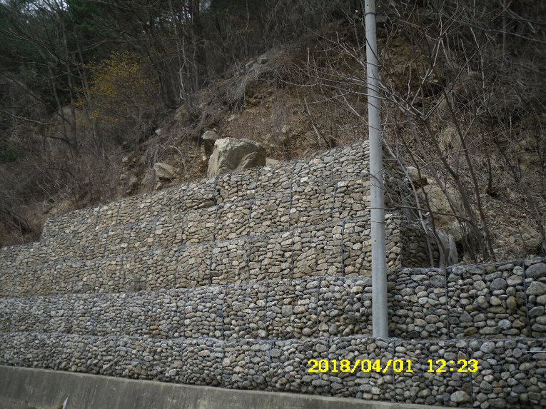 엄청나게 큰 돌멩이가 떨어져서 석축위에 얹혀 있습니다.