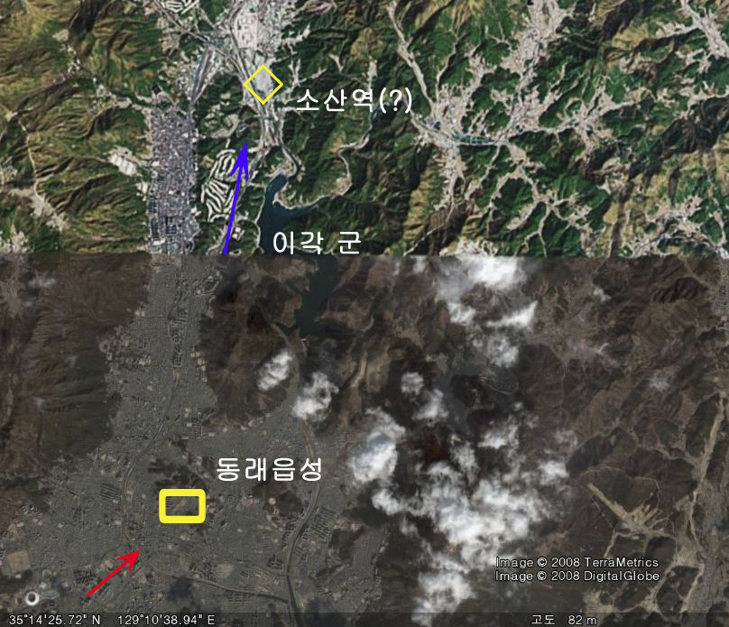 (현재 동래성과 소산역 위치)