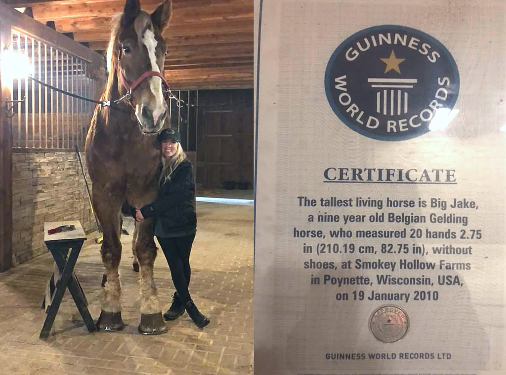 빅 제이크는 벨기에산 밤색 말로, 어깨 높이가 20.2hh(205cm)이고, 무게는 약 2,500파운드였습니다.