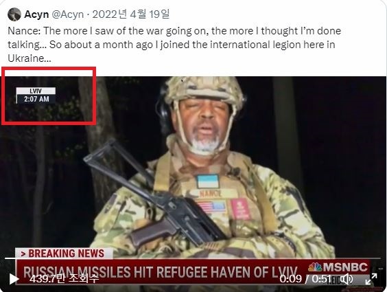 우크라 서부 리보프에서 총 들고 방탄조끼입고 인터뷰 할 일이 뭐가 있을까요. 쑈 했던거죠.