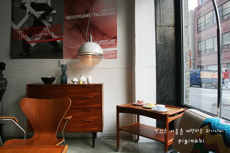 그가 직접 모은 디자인체어가 놓여있는 카페입니다.