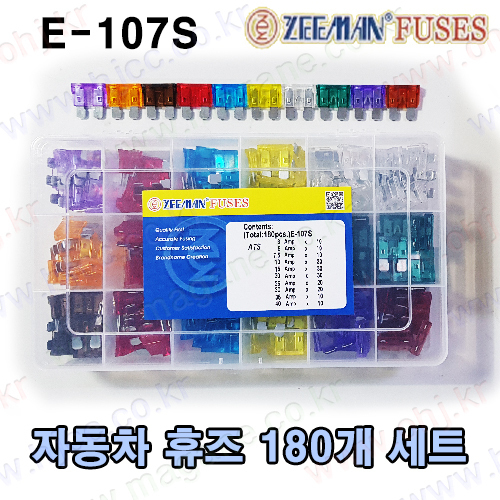 자동차 구형 휴즈/퓨즈 박스 180pcs 3A/5A/7.5A/10A/15A/20A/25A/30A/35A/40A E-107S -ZEEMAN-