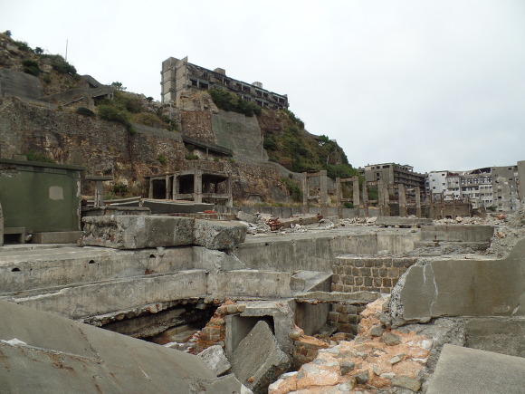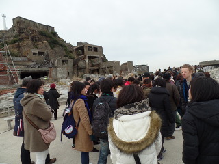 안내원의 유창한 해설이 이어졌다. “200년 전 이곳 해저에 석탄이 있는 것이 알려졌고, 1890년 본격적인 채굴이 시작됐다. 원래 남북 320m, 동서 120m 모래톱이었는데 여섯 차례에 걸친 매립으로 남북 480m, 동서 160m 섬으로 탈바꿈했다. 당시 이곳에는 사람이 살고, 소리가 나고, 생기가 있어 일본의 미래라 불리던 마을이었다.” 일제 강점기 강제징용에 대한 설명은 들을 수 없고 자국에 대한 미화만 쉼 없이 늘어놓는다.
