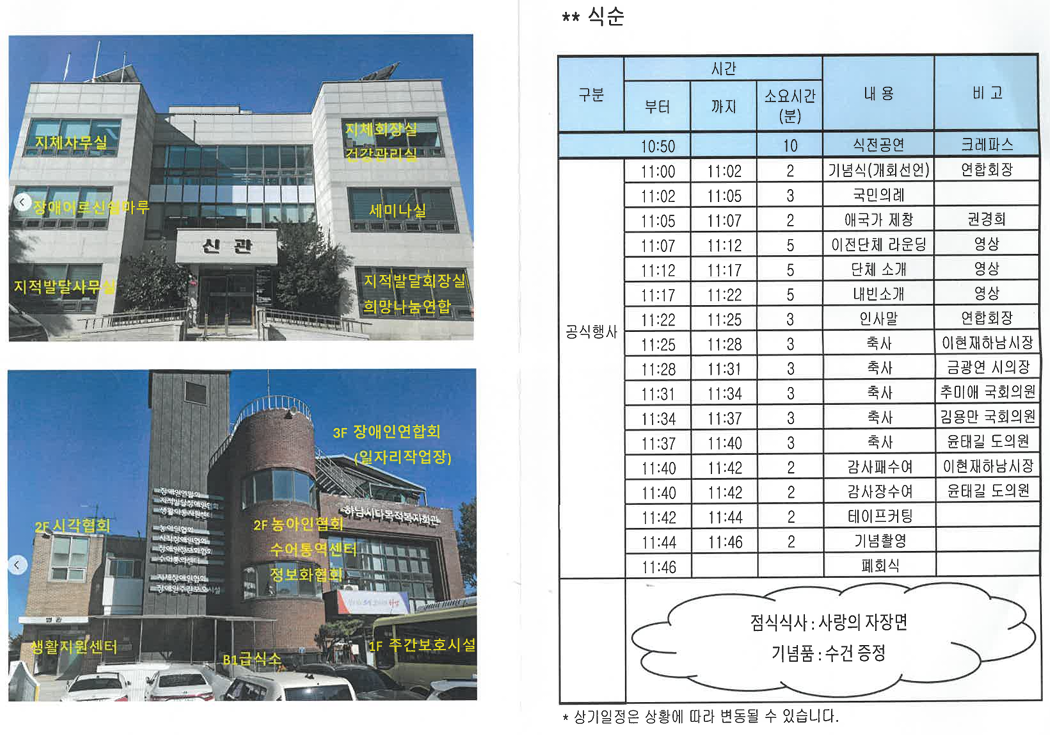 11월 4일 화요일 하남시 장애인단체 이전 기념식이 다목적 복지회관 앞마당에서 열렸습니다.