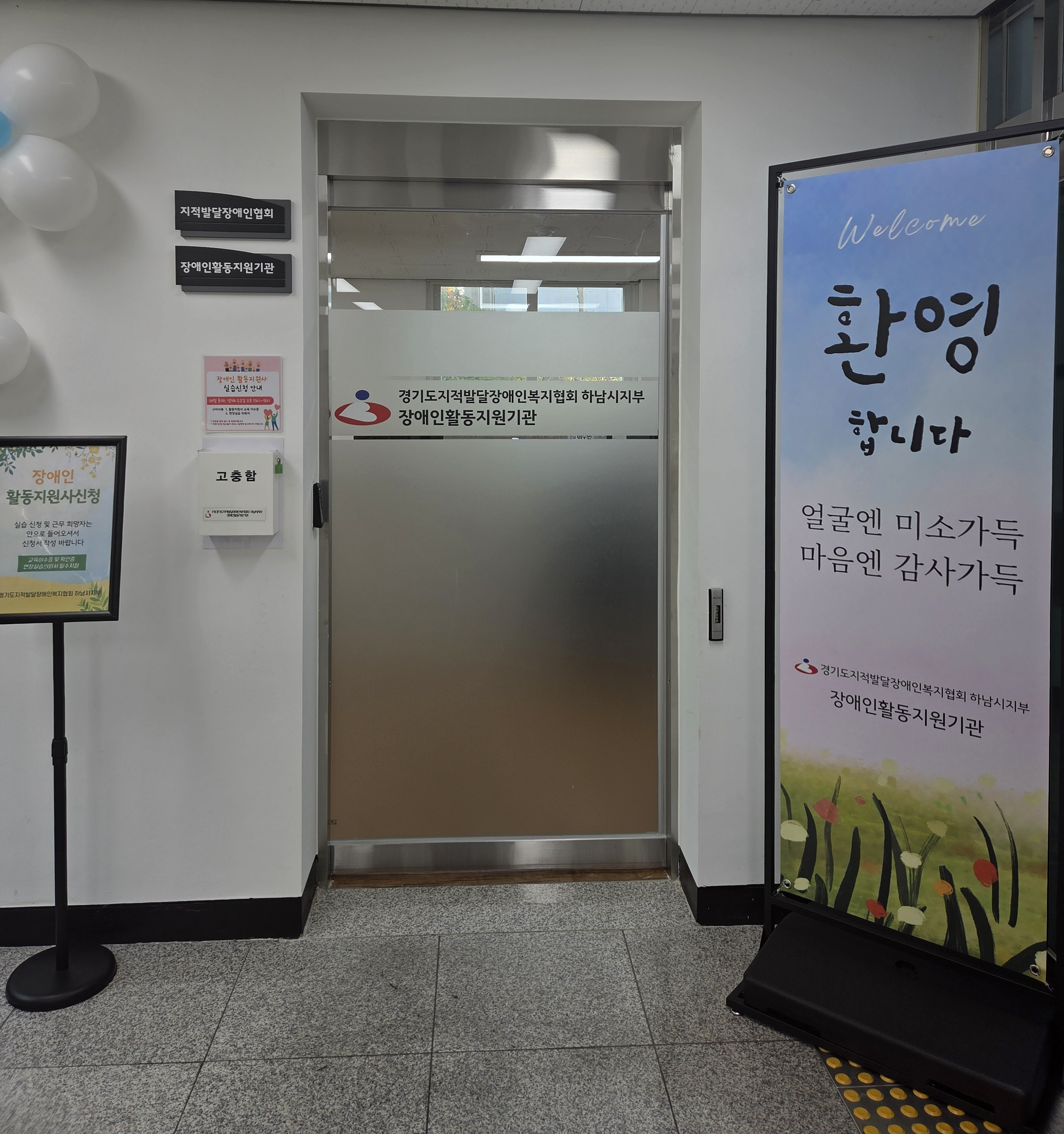 지적발달장협회 장애인활동지원기관 사무실 입구