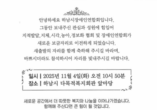 하남시 장애인단체의 새로운 보금자리에서 함께한 모든 분들과 기쁨을 나누는 뜻깊은 날이었습니다.